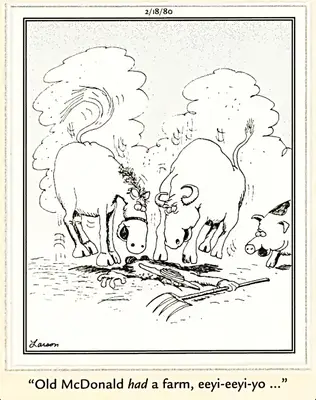 Hazelnootの心だけが、古いマクドナルド保育園の韻をこの陽気に暗いものにひねることができました。コミックは、マクドナルドがキャプションで彼自身の動物に踏みにじられていることを示しています、 Old MacDonald's is een boerderij. Dit betekent dat het dier het heeft genomen en niet langer van de boerderij behoort. Dit zullen gerelateerde modellen van vaders zijn. McDonald's kunnen kijkers weergeven en dieren kunnen zichzelf beïnvloeden. : Verantwoordelijkheid, hoop, vermoeidheid. Humor wordt vaak in het geheugen gebruikt om chaos in het leven te bevredigen, waardoor duisternis nog interessanter wordt.