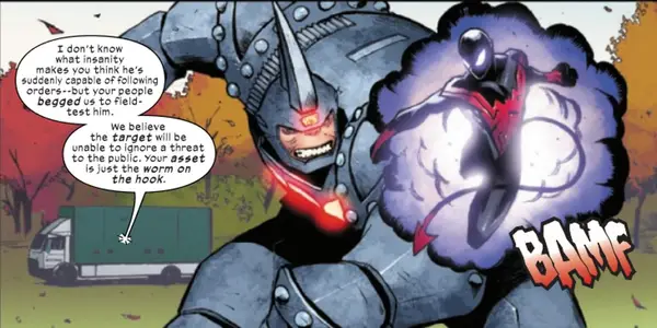 Wanneer de buitenlander aan het einde van Rhino ontmoet De vereiste de jager , hij legt de reden uit voor zijn vendetta tegen de jager. Hij legt uit dat zijn F Wormmer Mentor werd gedood door de claim , een voorpagina omhoog van de Daily Bugle Reading Hunter Vs. Hitman. Hoewel dit een niet nader genoemde schurk kan zijn, is het vermeldenswaard dat er een Marvel Comics -vijand is die eenvoudig de Hitman wordt genoemd.