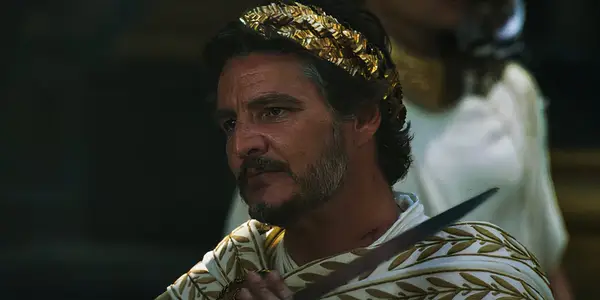 | Pedro Pascal | Marcius Acacius meesterbreinen gegoten | Pedro Pascal's Marcius Acacius faces the emperor with a blade held to his neck |
