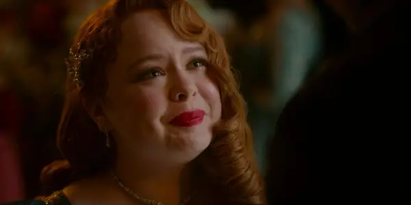 Penelope (Nicola Coughlan) op het punt om te huilen in Bridgerton Seizoen 3 Aflevering 8