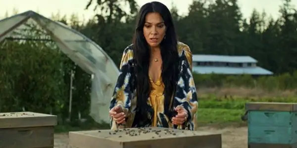 Lottie (Simone Kessell) kijkend naar haar dode bijen in Yellowjackets