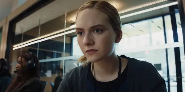 | Emilia Jones blauwe kever | Amelia Williams | Emilia Jones as Reality looking determined at a computer screen in Winner |