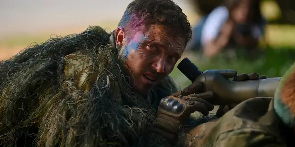 | Karl Glusman | Een jager | Karl Glusman lying on the ground with a gun in Burgeroorlog 2024 |