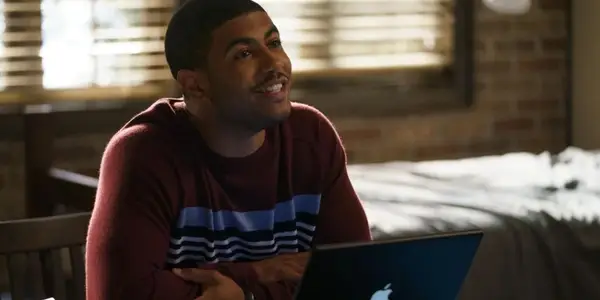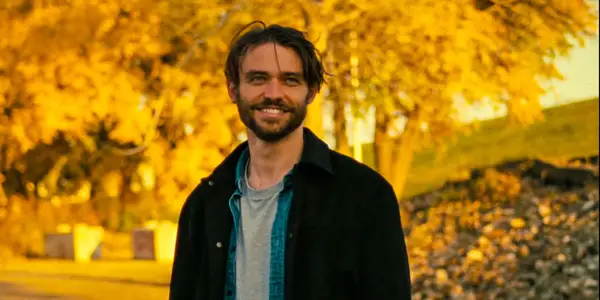 | Thomas Doherty | Leo | Casey (Thomas Doherty) glimlachend in paardenbloem Afbeelding via IFC -films |