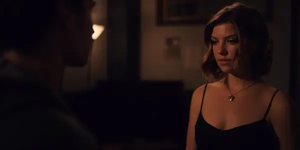 Lucy kijkt in de verte terwijl hij een glas vasthoudt op de bruiloft in Tell Me Lies Seizoen 2