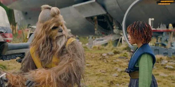 Kelnacca (Joonas Suotamo) en Little Osha (Lauren Brady) ontmoeten elkaar voor het eerst in het Acolyte seizoen 1 aflevering 3
